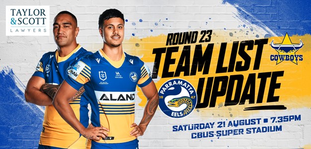 Parramatta Eels head coach Brad Arthur has named his 21-man squad for Saturday nights clash with the North Queensland Toyota Cowboys on the Gold Coast. NRL Team List.